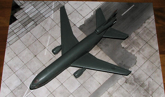 This tarmac is 1/200 and measure 39.6cm/15.6 inches by 28cm/11inches, which means it is pretty good size. Thanks to this large size, it will be able to take any currently produced Russian 1/200 bomber made by Revell, Dragon, Eclipse, Eastern Express and others. Thanks to my total lack of bombers in this scale that are not modeled in-flight on a stand, I have substituted another large 1/200 model to show off the base. In this case it is a USAF KC-10A.