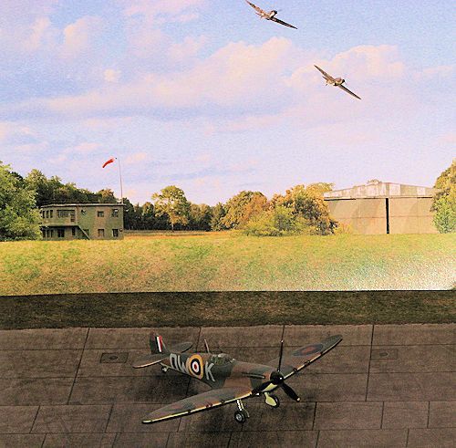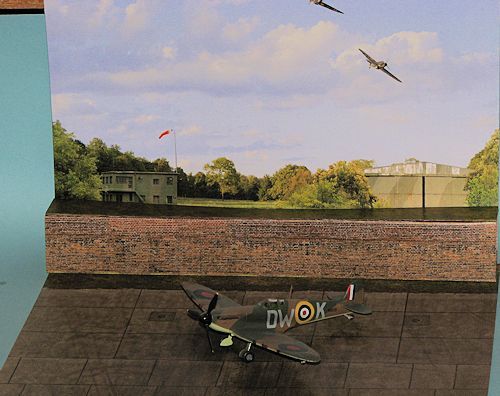 Next in their line of superb photo quality tarmac prints is this one that is more than just a tarmac base. This set depicts a Battle of Britain base area and comes complete with a backdrop print. One of the backdrops is a brick revetment and the other is a simple grass revetment. Also included are two sliver sections; one is grass and the other is brick with grass above it.