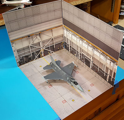 Noy's Miniatures has been doing a lot of great bases and is moving into diorama materials as well. This particular set is for a modern hangar the is found all over Western Europe and North America. The set is made of three beautifully reproduced card of which one is the floor, one is the back and the other is a side. This makes superb display area whether it just contains the aircraft or if one wants to load it up with figures and other accessories.
