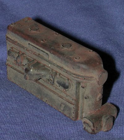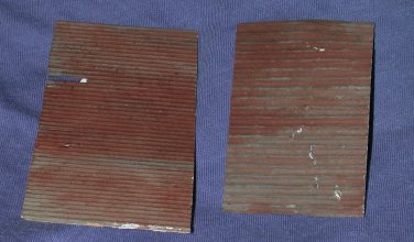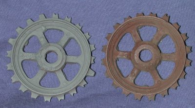 Rustall sent along several samples of what the material does. The gears above are resin and coated with dust and Rustall. Rustall claims to be usable on all materials, and this is shown by the two corrugated items shown directly above. On the left, the material is wood and on the right, cardboard. Quite effectively done, I think. The final sample shown below is a resin engine block.