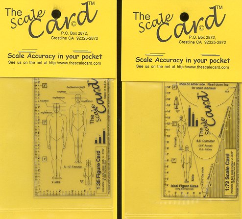 These come in a wide variety of scales; the two reviewed here are in 1/35 and 1/72 scale. As you can see by the 1/72 scale card, there is more info available on it; specifically the ability to measure circles with a bit more ease that with the larger scale card that doesn't have the room for it.