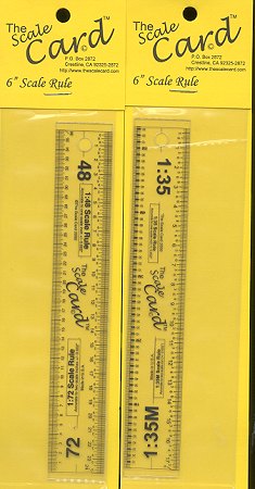 The Scale 6" scale rule is probably the most handy format for these kinds of measurements. They are clear so it is easy to locate reference points on whatever you are measuring. They are also two sided. Some have two scales on each ruler, while others, such as the 1/35 ruler, have the dimensions in both English and Metric scales.