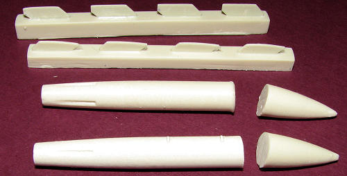 This kit is a two piece body. Molding on this one is nicely done with separate fins that will slot into grooves in the aft body section. The instructions, aside from being interesting reading, offer color information and should make into an interesting display.