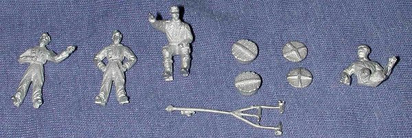 Here is the first in a new line of 'Airfield Range' figures in 1/72. This is an Me-262 figure set. It consists of four figures in various poses, including a driver for the kettenkrad, a pilot figure, a couple of ground crew, a tow bar, and intake/exhaust covers for the kit. I tried the covers on my Hasegawa 262 and found the the taller one fit the intake with no problem. The other cover is the right diameter, but the kit intake and exhaust 'bullets' interfere and will need to be sanded down or removed to have them fit. I'm thinking that these covers are more for the Revell kit, which is easier to find in Europe.