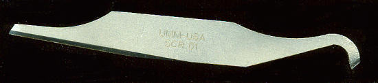 Here is another neat tool from UMM. Now this is one I've not had a chance to try as of yet as it is new to me. This is a scribing tool, but one that is a bit different from others you may have seen. This tool has two cutting blades. One is a smaller blade on a curved section of the tool. This is more like the scriber that we have seen before. The other is a much longer blade and can be used to both scribe and to do some carving and deburring as well. The tool is well formed so that there is a place for one to rest a finger to help make the tool more steady in your hand.