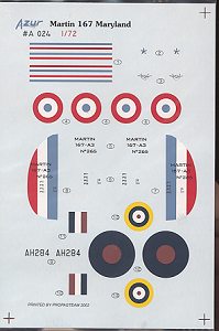 The instructions are quite typical of the MPM family of models with the usual pictorial diagrams and color information. Decals are superbly done and it looks like they finally have the blue dark enough. You get markings for the box art plane, but you'll have to paint on the red and yellow Vichy stripes. A nice touch is that there are separate serials for the rudder in case you wish to paint those stripes as well. The other markings are for a generic desert air force plane in dark earth and middle stone over azure blue. Interestingly, there are no under wing roundels for the RAF version. I would have though they'd be carried but again, I have little in the way of references on this plane.