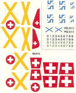 The instructions are basically the same as the 406 in most respects, including the incomplete color info given. There are markings for either a Finnish or Swiss plane. The Finnish one has the broken swastikas and the ability to do any MS.410 delivered. FS colors are given for this scheme. For the Swiss plane, the same multiple number option is provided and RLM colors are given for its camouflage. Hobbycraft has chosen a white background for this and other sheets. It makes finding the white lettering very difficult, but if you hold the sheet to the light just right, you can find them. The decals are well printed and glossy. How well they work is only conjecture as early Hobbycraft decals have a very poor reputation.