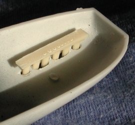 and aft mud guards glued in place and then the legs were painted very dark blue.
