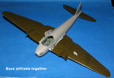 The interior was glued into the cockpit and the tail wheel trapped between the