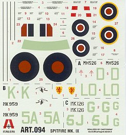 Markings are for three aircraft, all from the 1944 time frame and all in the usual Medium Grey, Dark Green over Light Grey. None of the RAF names are given for any of the colors and only Model Master paint references are provided. They would have you mix colors to get the sky for the spinner. First aircraft is 602 Sq, an aircraft flown by Pierre Clostermann, followed by a 329 Sq aircraft complete with Invasion Stripes. Final option is with 126 Sq. Decals are well printed by Cartograf and semi-matte. I'm sure there are other options out there if you want to do something a bit different from the kit offerings.
