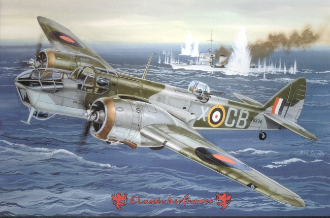 For all the early history of the aircraft, I'll let you read Tom Cleaver's preview of the Mk.I. The Mk.IV was an improvement over the earlier Mk.I and started entering service in early 1939 with 90 Sq. Among the improvements were a larger nose for the navigator and after the first 80 aircraft, additional fuel tanks in the wings to improve range. As the war progressed, other improvements like armor plating, an under-nose gun position and twin-gun turrets were added. An attempt at making it a night fighter was done adding a gun pack to the belly for four .303 machine guns, but it was not as successful as hoped. The first Mk.IVFs equipped 25 Squadron on 30 August, 1939.