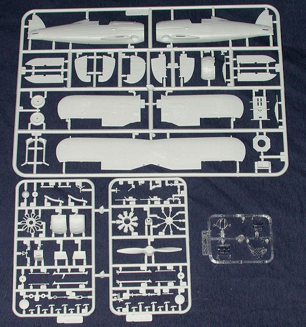 The plastic bits show signs of some flash on a few of the bits, most notably the cowling pieces of the D sprue. The others are quite minimal. There are also a few light sink marks on the fuselage opposite the internal detailing and where there are small ejector stubs. The only other place I noted this phenomenon was on the very thick sections of the landing gear struts where they attach to the fuselage. All should be easy to fill.