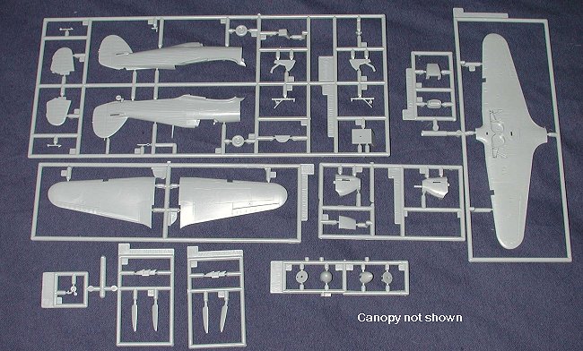 This kit is listed as the late type Hurricane for several reasons. It doe not have the fabric covered wings of the earlier variant, nor does it have a two bladed prop and it also has a different exhaust from the earlier version. There are a few other small differences, but those are the biggest ones.