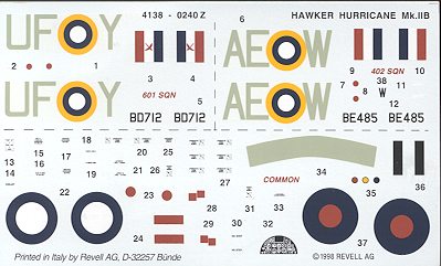 Humbrol paints. Markings are for two aircraft. The box art plane is from 601 Sq