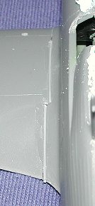 At this time, I joined the wings to the fuselage. Well, there are some real gap problems at the root (see image on the left). Perhaps these can be eliminated with a spreader bar in the fuselage, but it was too late for me. The best way to fix gaps of this size are to use stretched sprue. Just filling them with putty would not have worked well as it would have been a weak spot. Same for superglue. Once the gaps were filled with the sprue (see image to the right), filler was used to smooth things out and the sanded off panel lines were reapplied using an old Xacto knife.