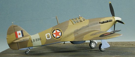 Well, it was time to do some painting on this beastie. Since the kit decals were toast due to age, I had to find an alternative. Aeromaster 72-024 has a number of interesting schemes for non RAF Hurricanes and has two in there for a IIc. One is an Indian AF version that duplicates what is in the Heller kit, so that was pretty well out. The other was a Jugoslavian version with desert camo and a Sky fuselage band. The choice being made, it was time to paint.