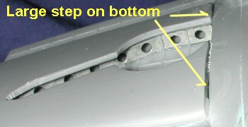 What I was left with was a HUGE step on the bottom and a smaller one on the top. Since the bottom is rather flat and easier to sand, this was the best recourse. As you can see from the images, it looks daunting, but really isn't that much of a problem as filler will take care of most of the problems once the sanding is done. If you don't already use sanding sticks, I would highly recommend them as they really cut down on the amount of time it takes when working on short run kits. I go through coarse sanding sticks at a rather prodigious rate and should buy them by the case!