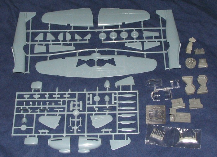 Resin is used rather extensively in the kit for the turret and guns, interior parts, and the wheel wells, just to name the more important ones. For the NF.II, photoetched parts are the belts and harnesses and the various dipole antennas for the wings and the fuselage side.