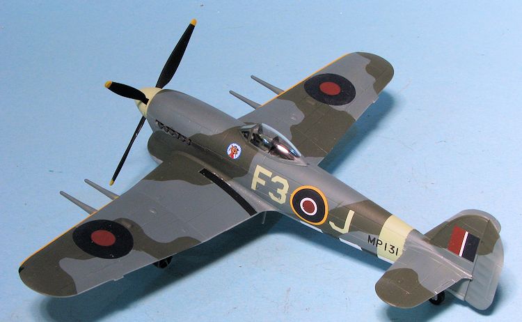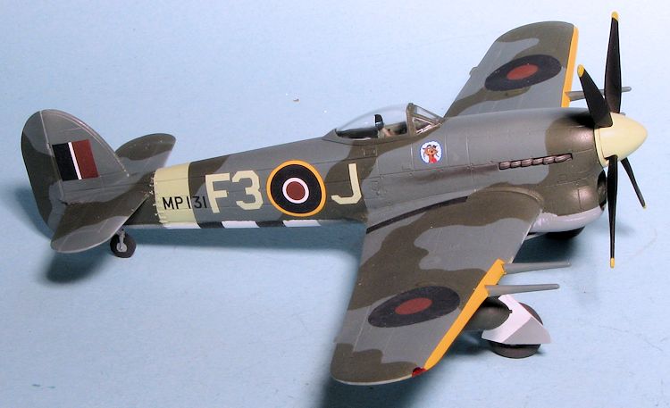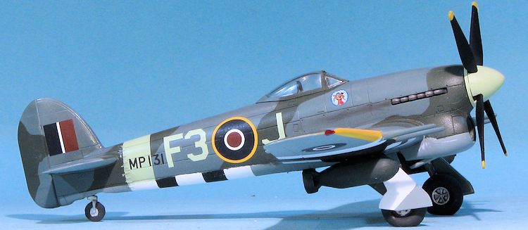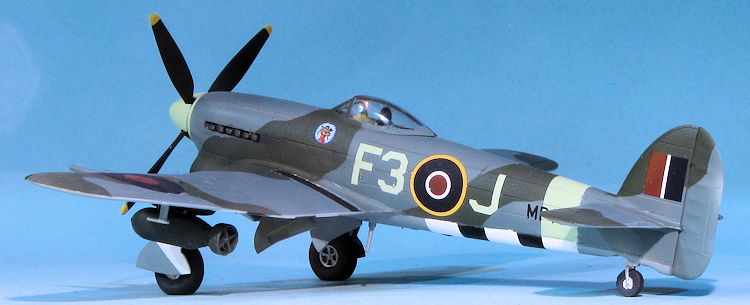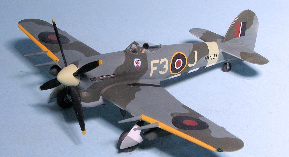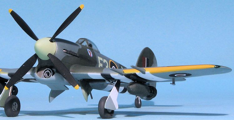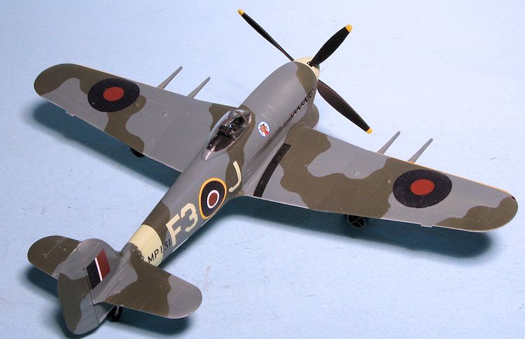 It often happens that the main motivation for a kit build is a set of decals. So it was with this one. I've never found the Typhoon to be a particularly desirable airplane for which to base a model. In all my modeling years, the only one I've ever built was the Monogram kit, which was also inspired by decals, in this case an IPMS Canada sheet. It was modified with a three blade prop, but I left the rest as was, which probably makes it most inaccurate!