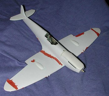 marks on the wings and fuselage were filled with my old standby 3M Acryl-Blue