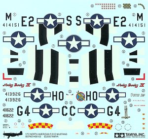 There are markings for three aircraft, all of them rather common markings that most P-51 builders have done before including Nooky Booky IV and Petie 2nd, which have been done to death! The decals look very nice, but one can see the blue backing through the white part of the insignia. The third aircraft E2*S, has a camo upper surface and invasion stripes. No way will the white be opaque enough to not allow the camo the show through. Most of us have oodles of aftermarket decals for Mustangs so will undoubtedly use one of those.