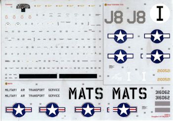 wing walk areas for the post-war option as well as an instrument panel decal.