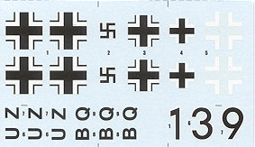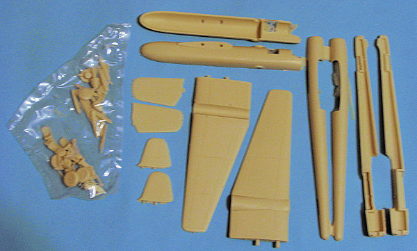 The kit also includes one canopy set and thanks to the lack of small frames, this one should be quite easy to mask. I also noticed that the fairings for the remote turret controls look very much like those provided in the XB-28 kit. I also noticed that the turret mounting holes were well centered on this one. Since this one is a tail sitter, no need to sweat nose weight. Instructions are the usual fare with a single exploded view (showing the gear doors in the closed position). Markings are for one plane in overall RLM 65 with RLM 70 mottling over the entire upper surface. Decals are nicely done and one only uses the insignia, leading me to think that this sheet was originally done for another kit or one coming up.