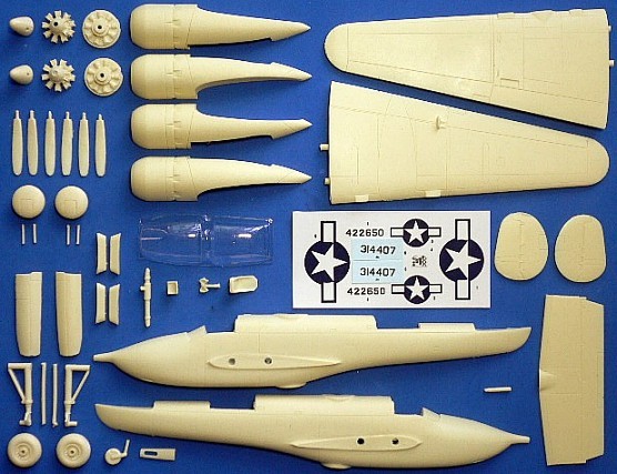 The gear doors are molded shut so will need to be cut apart to place in the open position. Unlike some other prototypes, these two were armed so gun barrels are given. There are also two rather generic engines provided; the first two rows being displayed in the cowling. A pair of bomb racks for each wing are also given. There is no indication of whether the props turn in the same direction or not, but the blades are numbered differently for the right and left side, so one will have to do some reading to see if this was the case.