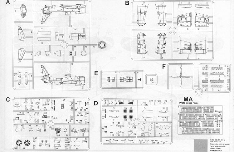 Though I have listed all of the goodies from the Cyber-hobby PR folks, a few things I though was neat. First of all, the rocket rails are a wing insert, which tells me that other versions are going to be done. Hopefully the -5, a version that has never been kitted and was used post-war by the French. Another is that you get the option to have the rear fuselage section raised or lowered and it is well done with different inserts for each. Though the instructions show that all the clear bits allegedly have options, there are none. I am not sure if the canopy sections can be stacked in the open position, but I sincerely hope so. I would have liked to have seen rockets, but one can always rob them from another kit.