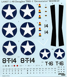 Instructions are superb and in booklet form. Great Wall have included color information during the build using Gunze, Vallejo, and Tamiya paint references. Markings are for two VT-8 planes from the USS Hornet. One is the box art plane of the unit's only survivor, Ens. George Gay while the other is the unit commander, LCDR John Waldron. Both are in Blue-Grey over Light Grey. The decals are very nicely printed and thanks to the design of the corrugations, should not be difficult to get to settle down on the wings.