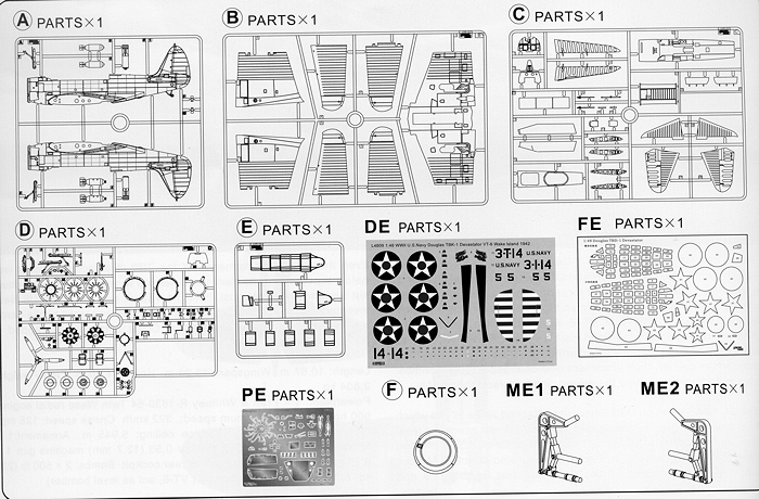 Instructions are superb and in booklet form. Great Wall have included color information during the build using Gunze, Vallejo, and Tamiya paint references. Markings are for two aircraft. One is the box art plane from VT-6 as used in the Wake Island raid. This is in the blue grey over light grey scheme. Another options for a VT-3 plane is included and this is a full yellow wings bird. GWH forgot to cross the T in the second set of side numbers for this one so you'll have to break out the black stripes decal to fix this small glitch. All of the stripes will need to be painted on to do this version, however, there are excellent aftermarket decals available if you wish to go that route.