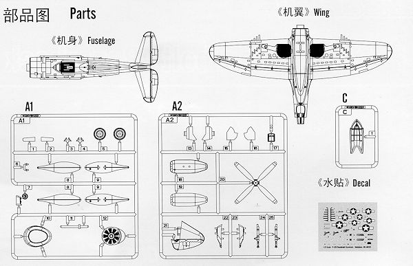 This is a nicely done kit, but continues the Hobby Boss tradition of not being exactly right in some form or another; in this case it is the prop. Gone also is the plastic tray, but Hobby Boss has foam wrapped the wings to protect the guns and the fuselage to protect the radio mast, so no worries on those items being broken in shipment.
