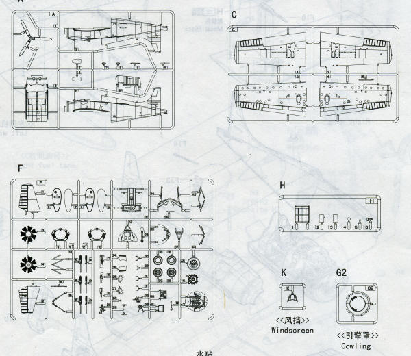 Instructions are well done and should provide no difficulties. Painting information is provided using Gunze paint numbers. For the camo and markings scheme, we have full color directions providing two options. One is the box art plane for a "Lieutenant Edward. H" (sic) (Butch O'Hare), from VF-3 aboard the Lexington prior to the Midway battle. The other is Major R.E. Galer's plane of VMF-224 in 1942. this one has a red forward cowling that you'll want to paint. Both are in the Blue Grey over Light Gull Grey paint scheme. As a note, these planes were delivered in the overall Light Gull Grey scheme and later painted with the upper surface Blue Grey. The decals are quite nicely done and while there have been comments on their tendency to silver, there are also oodles of aftermarket sheets for this aircraft if one doesn't wish to use what is provided..