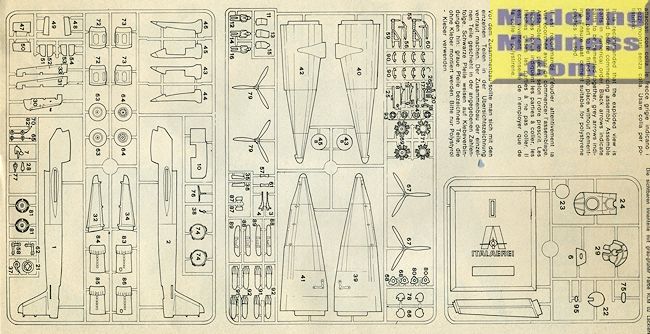 Wings are an upper and lower piece with the full ailerons and flaps molded in the lower section. The main portion of the engine nacelle/gear well is in halves. The landing gear is properly complex for the type and there is really no well detail. You are provided four main gear doors, two of which are normally closed.