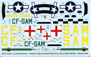 Instructions are typical Revell with Revell paint references requiring some paint mixing to get what others offer pre-mixed. Two markings options are the box art UC-64A from the 320th Transport Squadron in 1944 with its colorful yellow and black checked cowling. Even more colorful is the Canadian bush plane in Yellow and Emerald Green and registered CF-SAM with an air ambulance company in 1948. Decals are 'printed in Italy' which means Cartograf, decals that are a ton better than the original Matchbox.