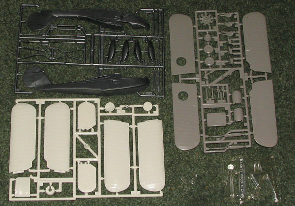 Often characterized by the 'mad trencher', this kit has little in the way of engraved lines aside from control surfaces and doors/hatches. The detailing in this case is finely raised and unless you are truly fussy, will make no difference in the look of the finished model. Fabric surfaces are the usual 'hills and valleys', but to a lesser extent that seen on some kits. The interiors are as basic as you can get with little more than a generic seat on which to place the crewman. You can even reduce the number of crew by covering over the front and rear gunner's positions, though you'll need a touch of surgery to do the aft one as it is designed to be in the open position.