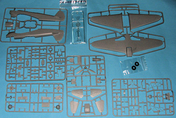 It is obvious that there are other Yaks in the works as the kit comes with landing gear and prop spinners that won't be used. The kit also comes with separate tires; both in plastic and in rubber. Most should go for the plastic ones as rubber has this tendency to split after several years. However, it is quite nice to have it as an option and I'm sure many will go this route. The kit is so designed that the landing gear pieces can be install near the end of the build. This helps when it comes to painting. For clear bits, there is a one-piece canopy (which is a shame as one should have the ability to open up the canopy to show that interior detail), and separate clear wing tip light lenses.