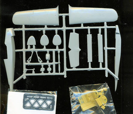 All of the various surfaces are butt joined as is typical of a short run kit. The kit also includes resin and this is pretty much limited to the cockpit, though the venturi tubes are also in resin. Photo etch is used for the blets and the flap hinges, in which instance the parts are folded over for increased strength to hold the plastic flaps. Two transparencies are provided (not shown), with one having more rear glazing than the other.