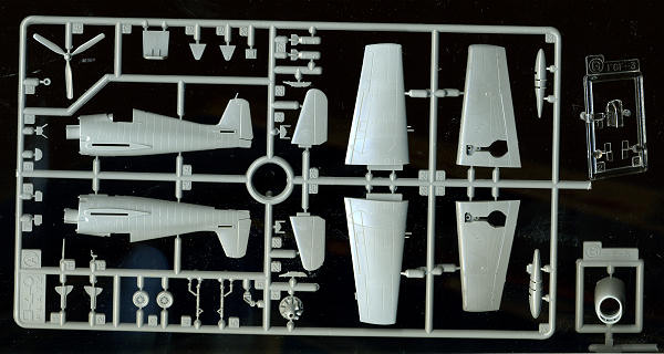 Pretty much most of the bits applicable to the earlier F6F-3 would be appropriate for the F6F-5. In fact, the same clear bits are included. However, the F6F-5 does not have the smaller windows aft of the pilot (well, most of them don't) and so Platz has incorporated the proper fuselage for this one. A different cowling without the small bulge is provided.