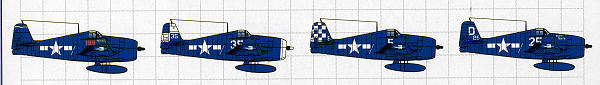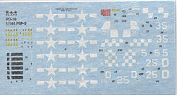 The four markings options are David McCampbell's 'Minsi III', a plane from VF-17 aboard the USS Hornet, A VF-27 plane from the USS Independence and finally a VF-27 plane, 'Merrl- Marle', from July 1945 with the number code replacing the nice geometric patterns. The decals are superbly done and one can hope that eventually, someone will do an aftermarket sheet with more nice geometric options.