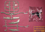 This one has a small cockpit that includes a molded on instrument panel and seats. Cabin windows are applied from the inside and there are exterior bubble windows for the MU-2S version to install in place of the aft cabin windows. I'd leave those off until after painting. The flat pane windows must be installed before gluing the fuselage halves. Sings are a single piece with the engine nacelles being separate.