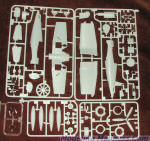 Beginning in the cockpit, which is the norm for previews, you get a forward and rear bulkhead, a floor section that is open and includes a trough under it for the separate control stick. Rudder pedals are provided for the forward bulkhead piece and the seat fits on a block under it on the floor section. In reality, it is attached to the rear bulkhead. There are also side consoles provided to fit into each fuselage half. So pretty complete, I'd say.