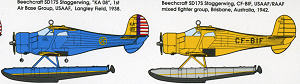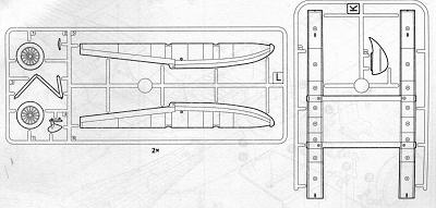 What you do get extra are two sprues to do the float version. These are show in the drawings to the left. You still get the wheels and gear and doors for the land plane, so if you have a change of heart, the landplane version can be built, though you will need to cut wheel openings in the bottom of the wing as this one comes with a solid lower wing. A very nice touch is that the upper float pieces are molded as a single, joined piece so this will help with alignment. The kit also comes with beaching gear, which is attached directly to each float, sort of like is done with the Kingfisher.