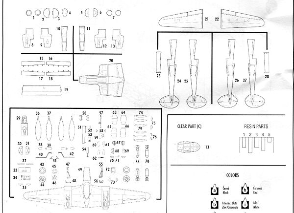 On the booms, there is a single piece well for each main gear. The coolers on each side have an insert for the front and rear of the radiator. Atop are some scoops and the turbocharger outlet. The kit provides individual propeller blades, which I personally detest and there is no key to ensure they are all at the same pitch. Engine fronts are separate to allow the later versions to be done. Inserts for the intakes are provided for this version.