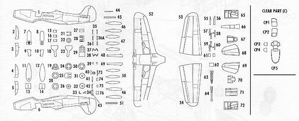 This one is a case in point. To my knowledge, no other injected kit of the P-400 has been done in this scale. The kit is a short run offering with finely engraved external detailing, somewhat excessive mold seams on all parts, ejector towers in large parts and sink areas in those bits that are thick. I also found several of the part mounting holes to be filled or too small so a set of drills will be required. As such, it is important to test fit every part prior to applying cement.