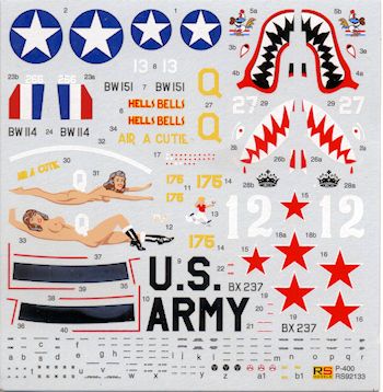are in standard USAAF OD/Grey. The decals are very nicely done and should work