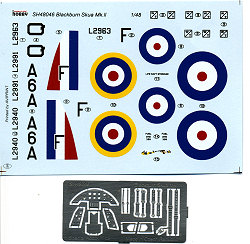 Instructions are well done with Humbrol and or Gunze paints given as a reference. All markings options are Dark Slate Grey/Sea Grey with Sky lower fuselage and right lower wing in black with the left lower wing in white. The 803 Sq Skua is lettered F in the fin flash and has a yellow surround to the fuselage insignia, while the 800 Sq plane has no fin flash and A6A tail codes and the other 803 Sq aircraft is also 'flashless' with the letter Q on the fin, the least colorful of the three. I'm sure the first option will be the one most build. Decals are superbly printed and should give excellent service.
