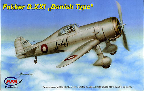The Fokker D.XXI was a low wing monoplane with a steel tube fuselage covered in large part by fabric. Following some of the standard Fokker design practice, it had wooden wings and a fixed spatted undercarriage. Power was provided by a Bristol Mercury radial driving a 3-blade two pitch airscrew. When it entered service in 1938 it was a quantum leap forward for the Dutch Army Aviation Group though. Until then its fighter force had consisted of aging biplanes with open cockpits. The new Fokker proved to be an extremely sturdy aircraft capable of attaining a speed of 700 km/h in a dive.