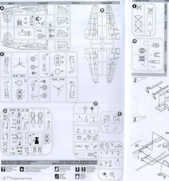 There are differences in the noses used, the antenna arrangement, and the engine carb intakes depending on which markings option you are doing. Interestingly, all of the serial numbers are within 32 of each other ranging from 9753 to 9785. This tells me none of the options is a P-70A so none should have guns in the nose. In fact, the instructions tell you to do some filling on one of the solid nose options (the lone P-70B).