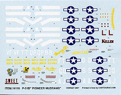Three are with the Malcolm Hood and that includes the three aircraft from different squadrons of the 354th FG. One of these is 'Ding Hao' of the 356 FS and that aircraft has three choices of how to portray the markings. The 355 FS is represented by 'Killer' and the 353rd by what looks like 'Rosey II'. Don Gentile's plane from the 334 FS/4 FG is another featured with two ways to show that. Along with it is Duane Beeson's aircraft and finally a presentation plane from the workers at Packard.
